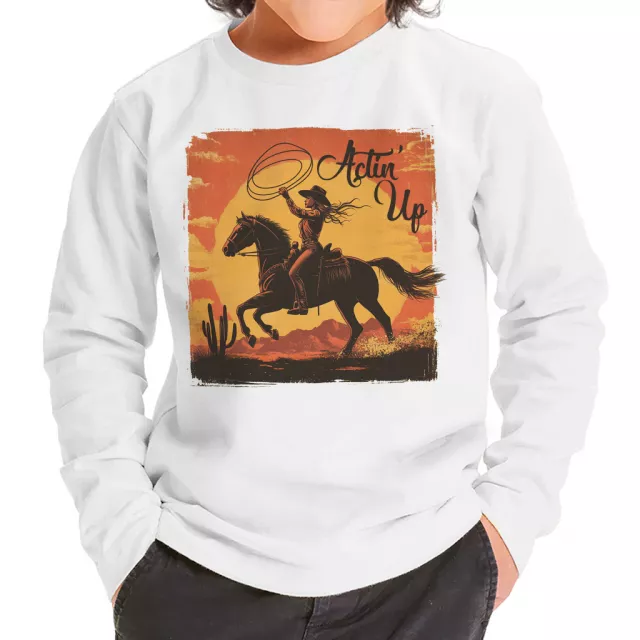 Actin’ Up Toddler Long Sleeve T-Shirt – Vintage Style Boy Girl Tee – Western Aesthetic T-Shirt for Kids