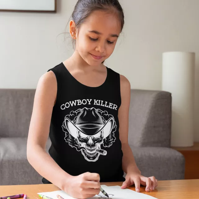 Cowboy Skull Kids’ Jersey Tank – Skeleton Design Sleeveless T-Shirt – Smoker Skull Kids’ Tank Top