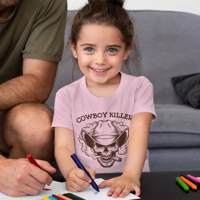 Cowboy Skull Toddler Cotton T-Shirt is no ordinary piece of clothing. Its crew neck and short sleeves provide a comfy fit.