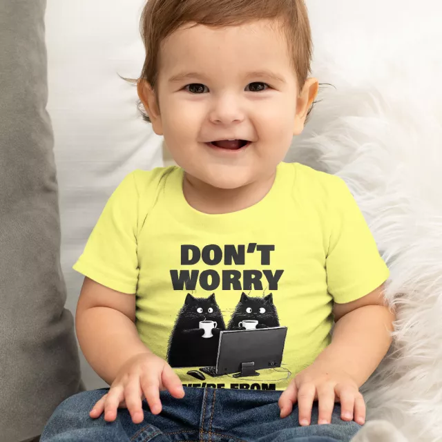 Don’t Worry We’re From Tech Support Baby T-Shirt – Funny Gift T-Shirt for Kids – Cool Cat Short Sleeve Tee