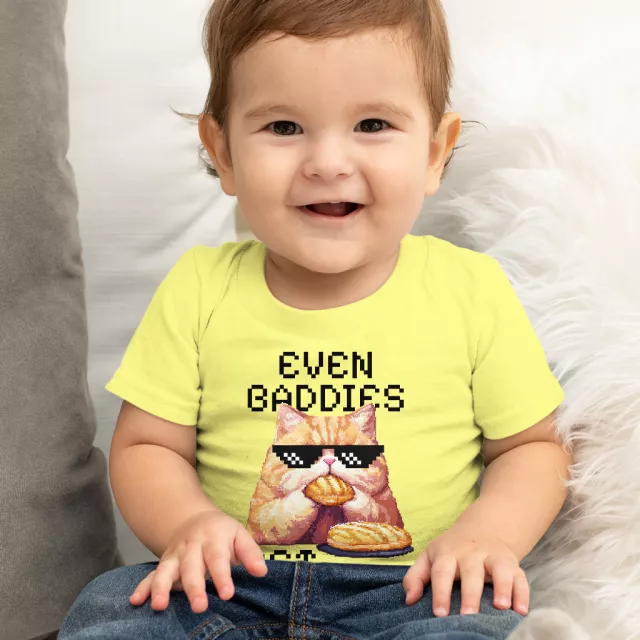 Even Baddies Get Saddies Baby T-Shirt – Cat Lover T-Shirt for Kids – Cat Meme Short Sleeve Tee