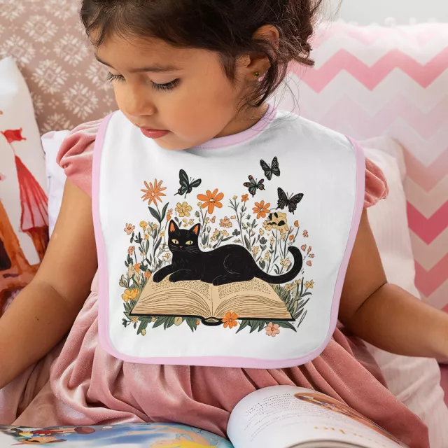 Floral Cat Baby Bibs – Cat Book Baby Feeding Bibs – Cute Cat Unisex Bibs for Eating