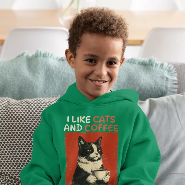 I Like Cats And Coffee Toddler Hoodie – Funny Cat Hoodie for Kids – Vintage Cat Hooded Pullover