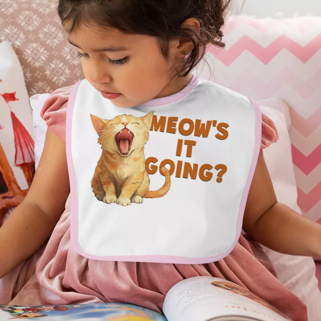 Meow’s It Going Baby Bibs – Meowdy Partner Baby Feeding Bibs – Cat Saying Unisex Bibs for Eating