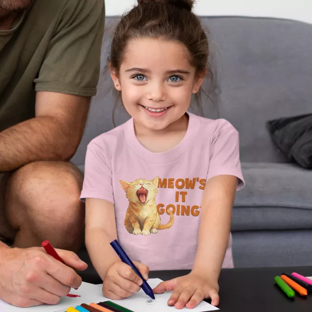 Meow’s It Going Toddler Cotton T-Shirt – Cat Saying Short Sleeve Tee – Meowdy Partner T-Shirt for Kids