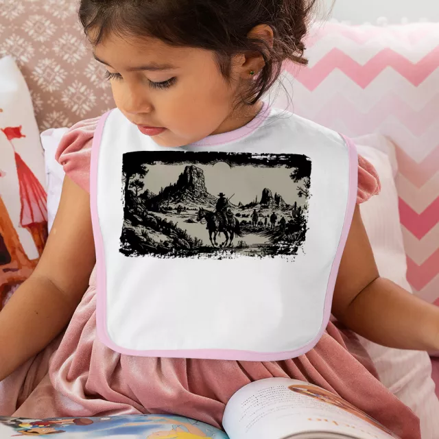 Retro Cowboys Graphic Baby Bibs – Rodeo Cowgirl Baby Feeding Bibs – Vintage Wild West Unisex Bibs for Eating