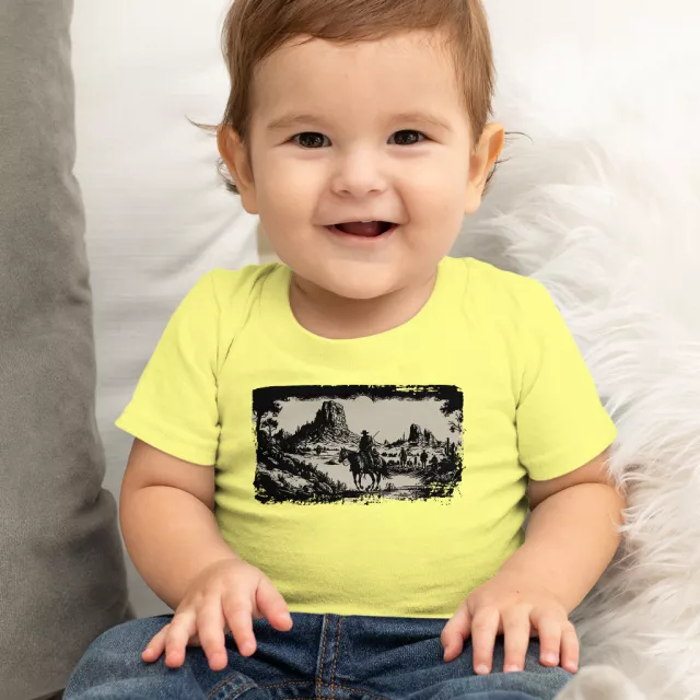 Retro Cowboys Graphic Baby T-Shirt – Vintage Wild West T-Shirt for Kids – Rodeo Cowgirl Short Sleeve Tee