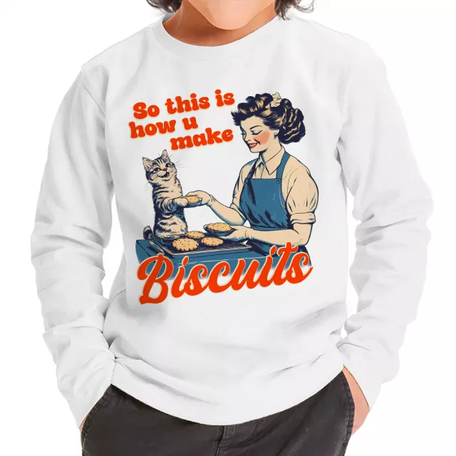 So This Is How You Make Biscuits Toddler Long Sleeve T-Shirt – Cat Kneading Boy Girl Tee – Retro Cat T-Shirt for Kids