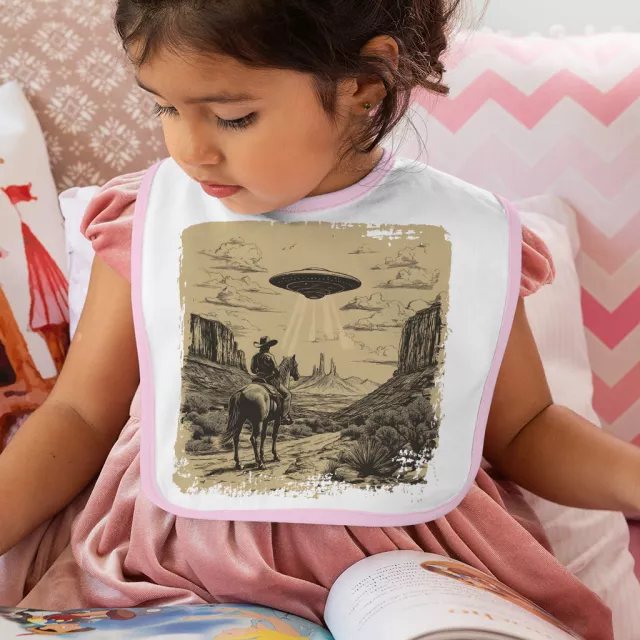 Ufo Western Baby Bibs – Rodeo Baby Feeding Bibs – Vintage Cowboy Unisex Bibs for Eating