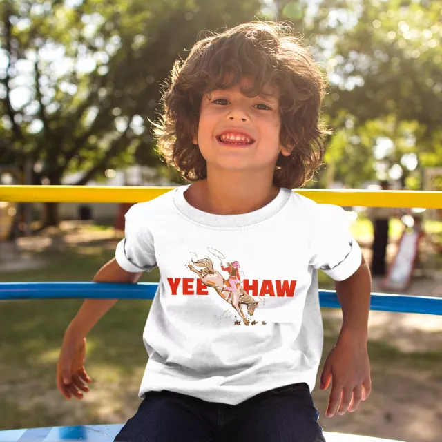 Yeehaw Kids’ Cotton T-Shirt is no ordinary piece of clothing. Its crew neck and short sleeves provide a retail fit for clothing that’s true to size.